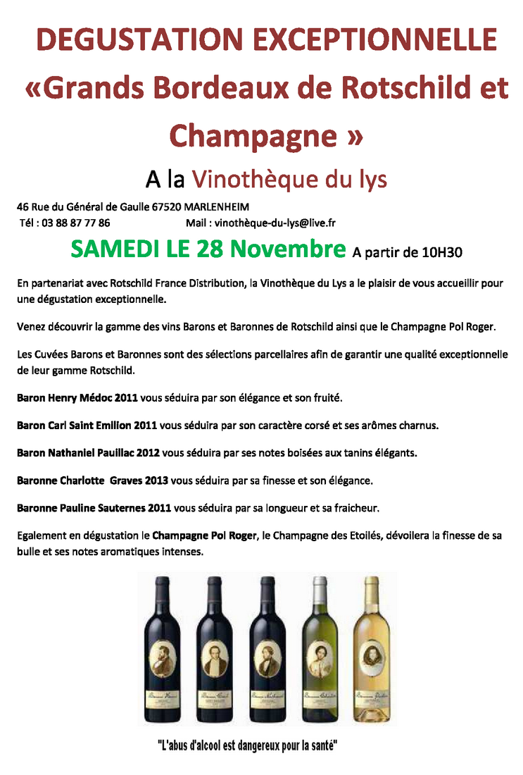 Vinothèque du Lys - Marlenheim Durée : à partir de 10h30 Entrée libre